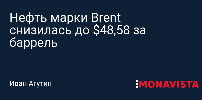 Октябрьские фьючерсы на нефть Brent на лондонской бирже ICE Futures к 17:00 снизились в цене на $0,16 (0,33%) — до $48,58 за баррель, передает Интерфакс-Украина.