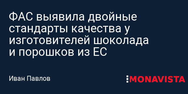 ФАС выявила двойные стандарты качества у изготовителей шоколада и порошков из ЕС