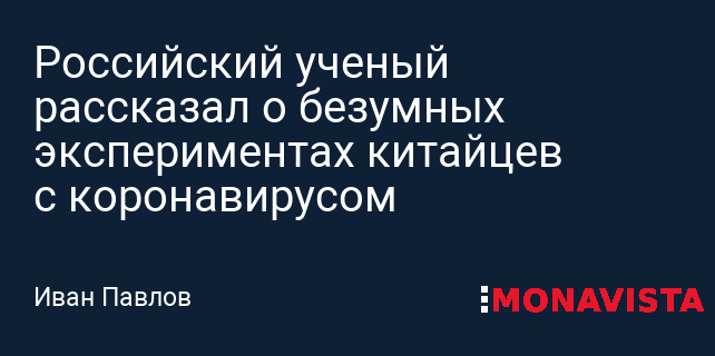 Российский ученый рассказал о безумных экспериментах китайцев с коронавирусом