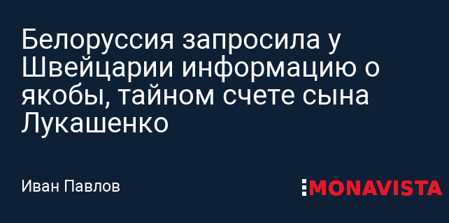 Белоруссия запросила у Швейцарии информацию о якобы, тайном счете сына Лукашенко