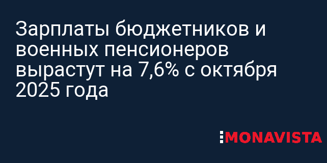 Зарплаты бюджетников и военных пенсионеров вырастут на 7,6% с октября 2025 года