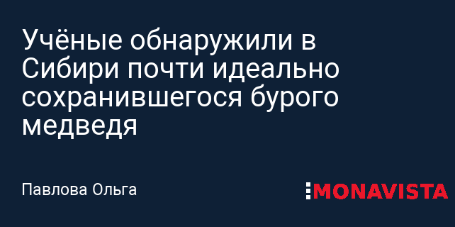 Учёные обнаружили в Сибири почти идеально сохранившегося бурого медведя