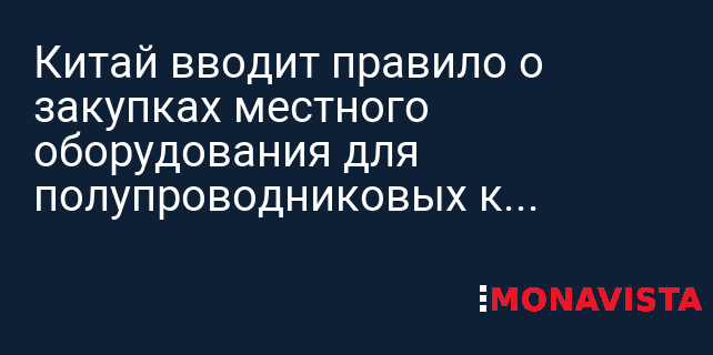 Китай вводит правило о закупках местного оборудования для полупроводниковых компаний