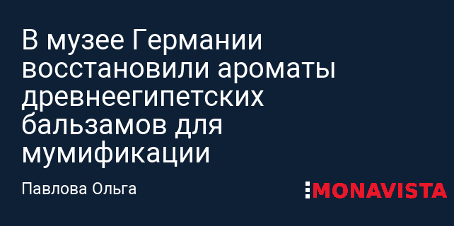 В немецком музее Августа Кестнера в Ганновере посетителям впервые предложили познакомиться с подлинными запахами, которые использовались в Древнем Египте при мумификации. Реализовать этот необычный проект позволили достижения биомолекулярной археологии, показавшие, что древние предметы способны сохранять молекулярные следы ароматов, связанных с медицинскими, ритуальными и парфюмерными практиками прошлого.