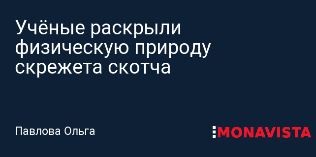 Международная группа исследователей наконец объяснила, почему отклеивание скотча сопровождается характерным скрежетом. Более полувека учёные знали, что при отрывании ленты она не только издаёт звук, но и испускает свет, а в вакууме — даже рентгеновское излучение. Новое исследование показало, что источником акустического эффекта являются микротрещины, распространяющиеся по клеевому слою с сверхзвуковой скоростью и создающие серию слабых ударных волн.