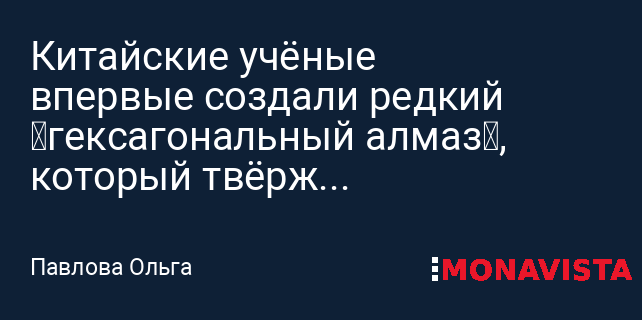 Китайские учёные впервые создали редкий «гексагональный алмаз», который твёрже природного