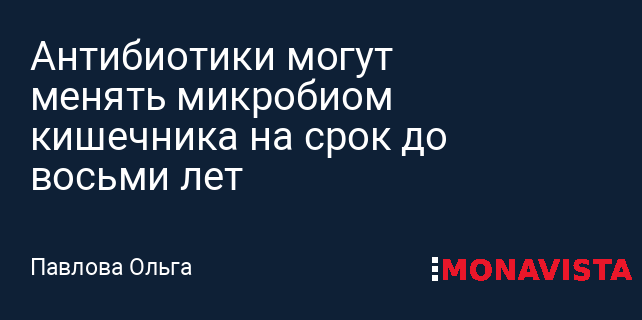 Шведские ученые из Уппсальского университета выяснили, что даже один курс антибиотиков способен оказывать долговременное влияние на микробиом кишечника, изменения могут сохраняться до восьми лет.