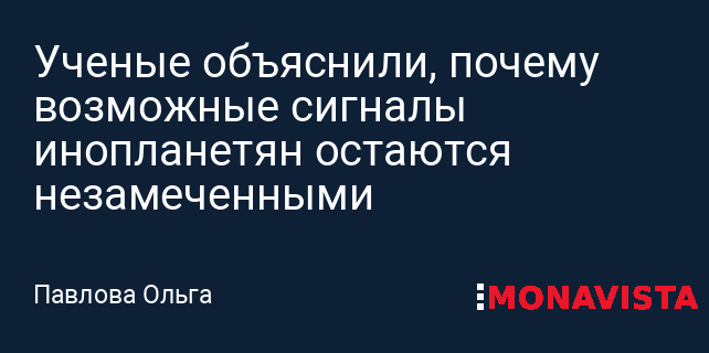 Ученые объяснили, почему возможные сигналы инопланетян остаются незамеченными