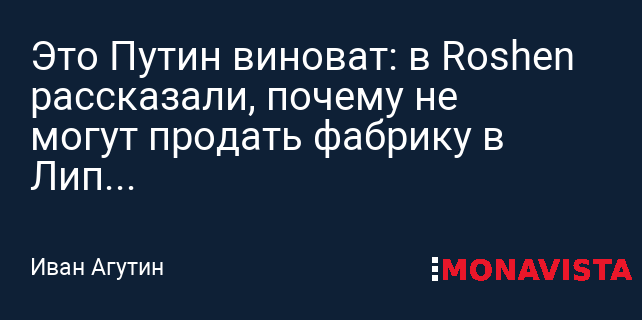 Президент кондитерской корпорации Roshen Вячеслав Москалевский считает, что липецкую фабрику не удается продать, потому что этому мешает российский президент Владимир Путин. Соответствующее заявление Москалевского распространила пресс-служба корпорации.