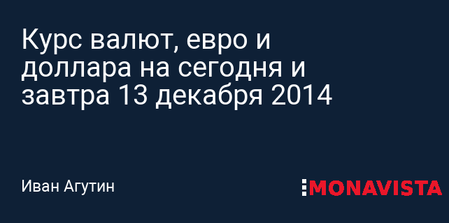 Курс валют, евро и доллара на сегодня и завтра 13 декабря 2014
