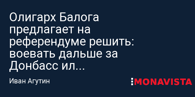 Олигарх Балога предлагает на референдуме решить: воевать дальше за Донбасс или цивилизовано отпустить