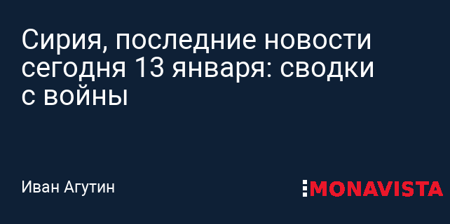 Сирия, последние новости сегодня 13 января: сводки с войны