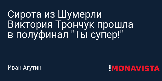 Девушка-сирота из Шумерли Виктория Трончук прошла в полуфинал телешоу "Ты супер!". В вокальном конкурсе принимают участие дети-сироты в возрасте от 8 до 18 лет.