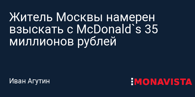 Житель Москвы намерен взыскать с McDonald`s 35 миллионов рублей